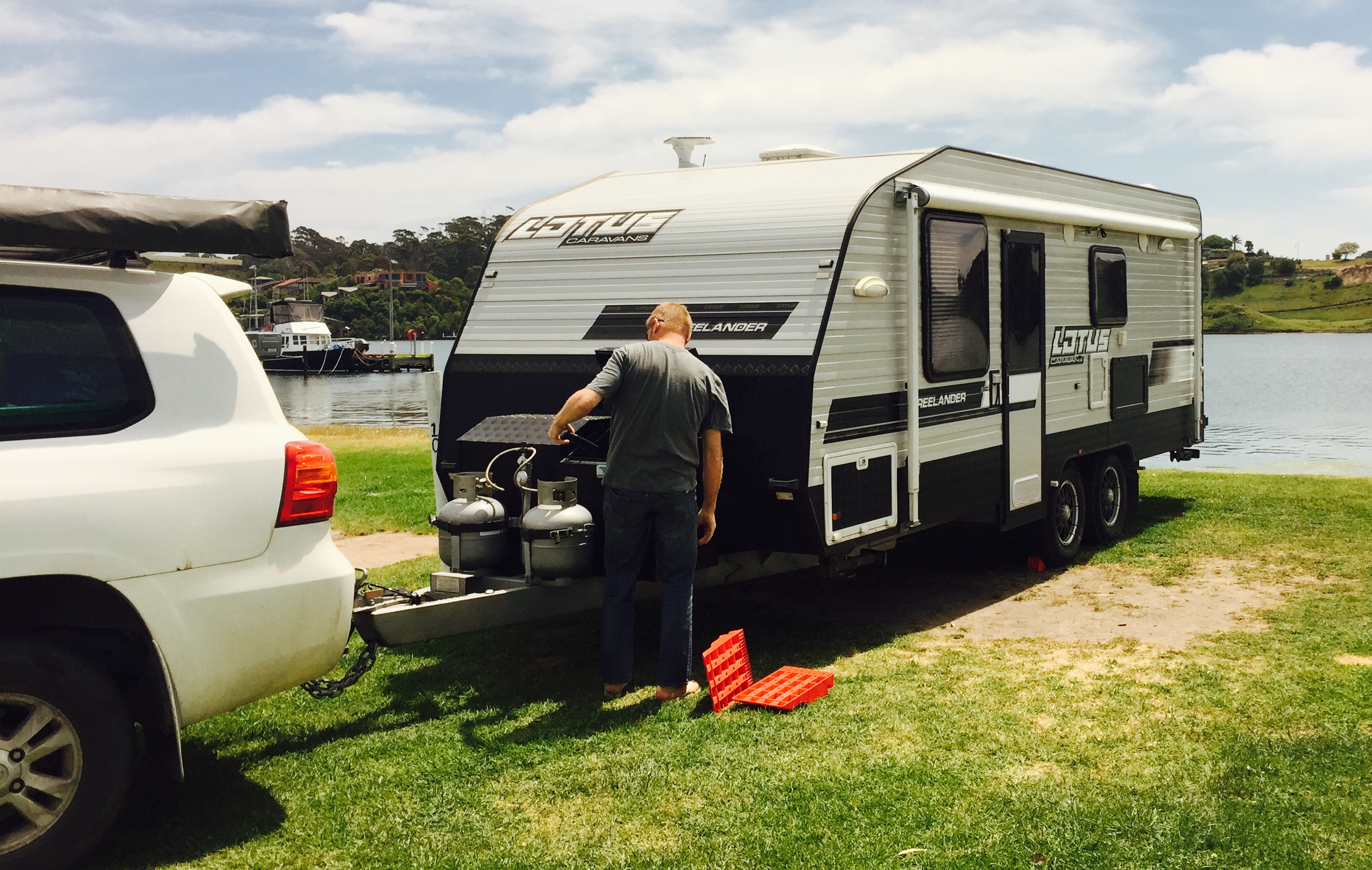 Lakes Entrance is purdy. We’re camped, sadly for only one night, right on the lakes edge. Tomorrow we’re off to catch up with our Victorian relatives.