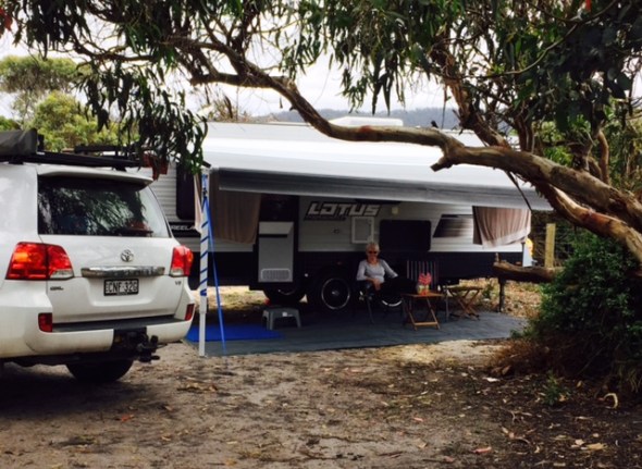 Now that we’re experts at this free camping thing (tonight will be night #5) we drove into a “little” camp spot at Jeanneret Beach, all of 100m from the beach.