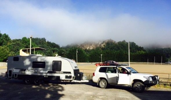 We free camped at the sports ground. The AFL footy oval is all gravel. They breed em tough down here.