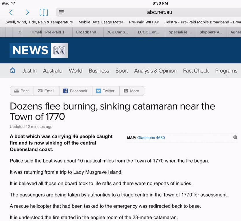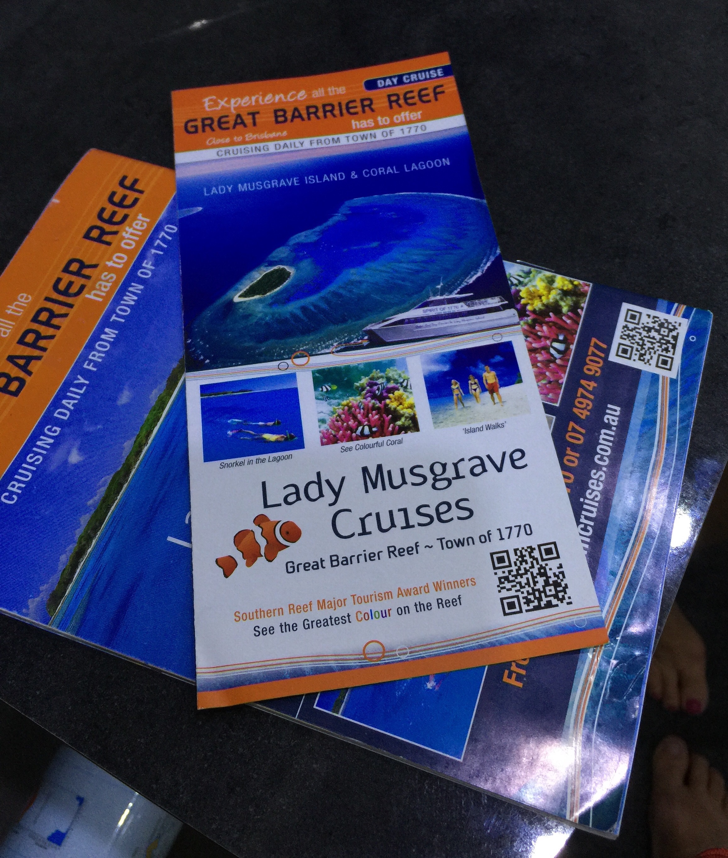 We’d been planning to do a day trip out to Lady Musgrave Island for a bit of snorkelling. Got the brochures and this one looked great. Jayne’s not real good on the ocean so we thought a big flat catamaran would be the safe, stable option.