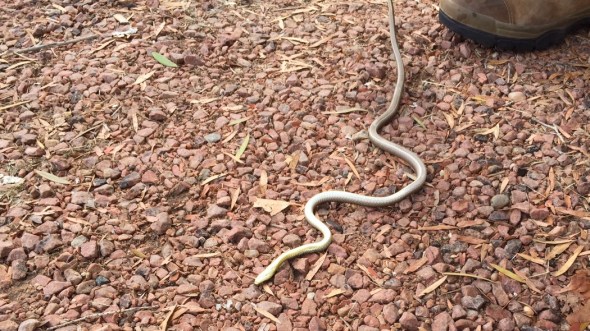 Now. In the past, on our few slivery occasions, it has been Jayne who has spotted the snake first. My main memory of these moments is lots of her screaming “SNAKE, SNAKE, SNAKE…” with little direction or indication of where the snake may actually be. As such I’ve become quite good at the crazy man dance of the “WHERE,WHERE,WHERE’S the flamin snake”.