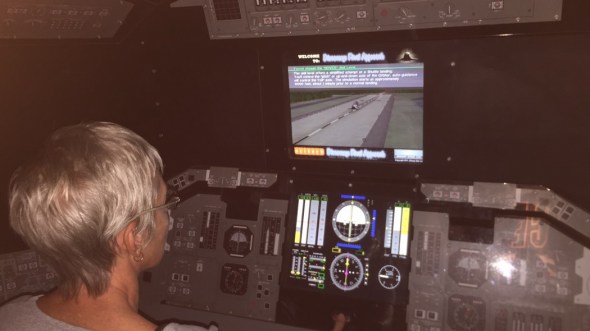 Having said that, I did manage to crash & burn the space shuttle simulator. Jayne didn’t land or crash but got a cheaky comment from the console to suggest she’d used the space shuttle “to boldly go where no man has gone before.” An old Star Trek reference.